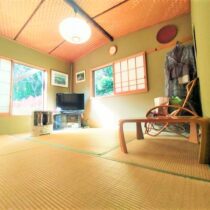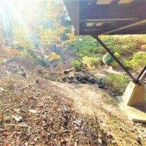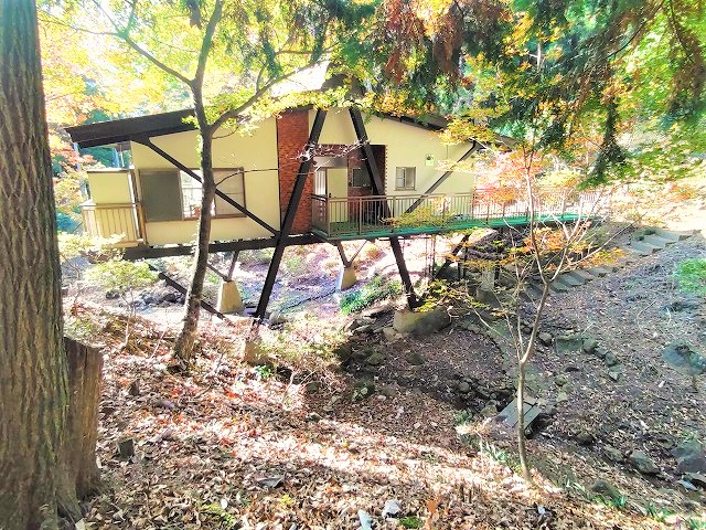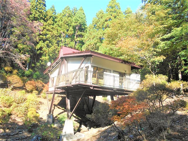【那須高原中古別荘】眺望良好な2LDK。敷地面積2180㎡(約660坪)。【小川の見える中古別荘】