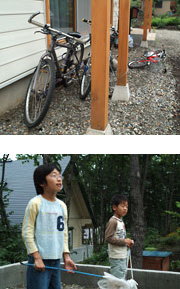 JR黒田原駅から約2.5kmの「みやびの郷」分譲地。雑木林に囲まれた自然たっぷりの空間で、小4の阿久津慧(けい)君、小1の諒(りょうくん)が飛び回っている。何で遊んでいたのと聞いたら、「キックボード。釣りもサッカーもやるよ」と明るい声で答えてくれた。奥さんと幼稚園児の有佳ちゃんは不在だったが、元気いっぱいな子どもたちの様子を見ると、さぞかし賑やかな家庭に違いない。 阿久津さん一家は2年前まで、神奈川県川崎市の公営住宅に住んでいた。職場に田舎暮らし願望を持つ同僚がおり、2人で「田舎に行きたいね」とよく話していたという。その人が那須の土地を購入したと聞き、すぐに見せてもらった。それが「みやびの里」分譲地内の土地だった。